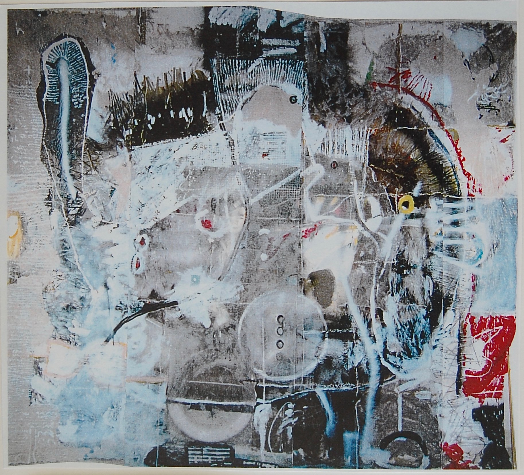 A wide range of materials were used, including acrylics and oils, basic construction materials, paper, cloth and miscellaneous objects, which constitute the work’s final homogeneity.